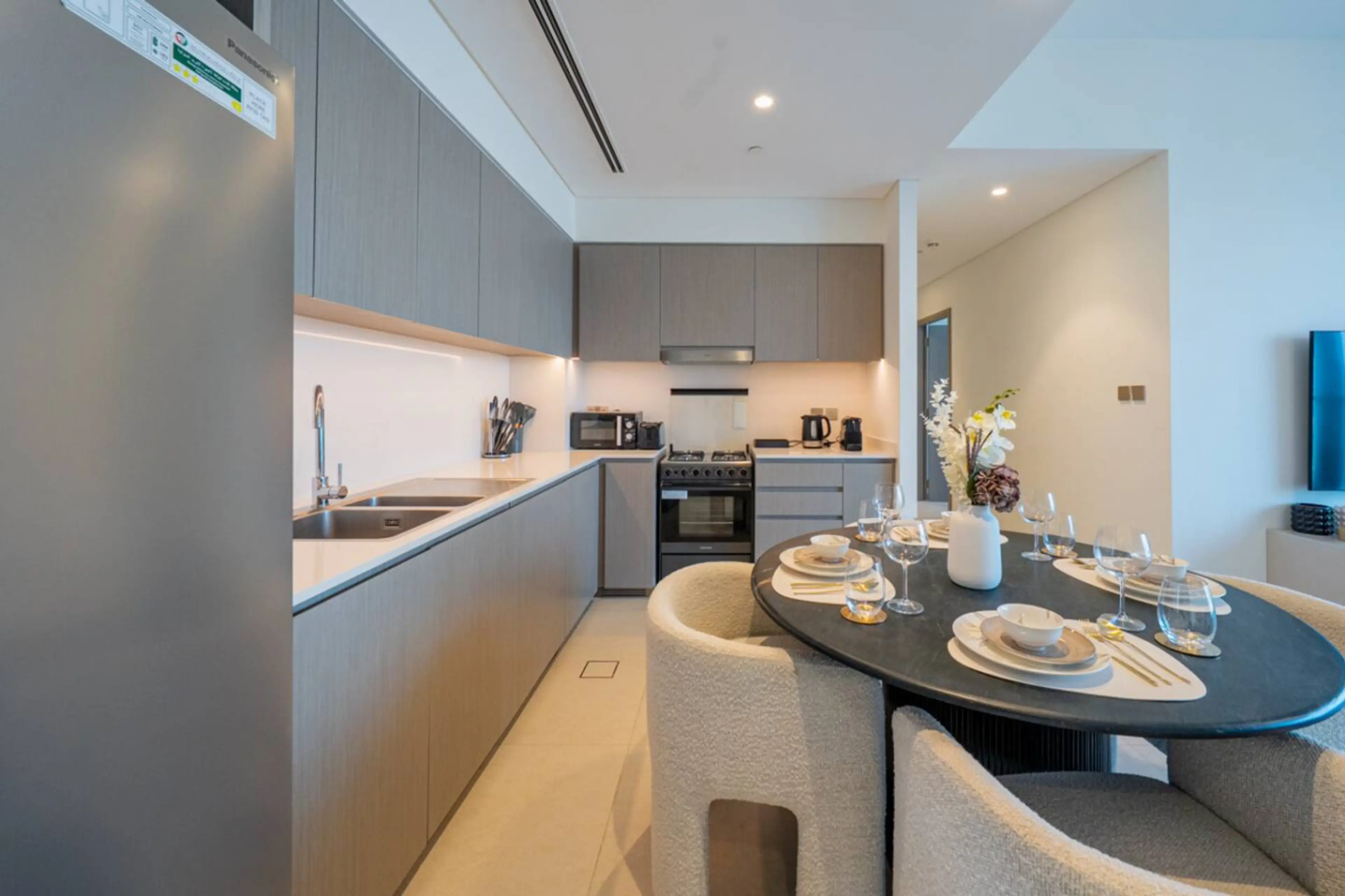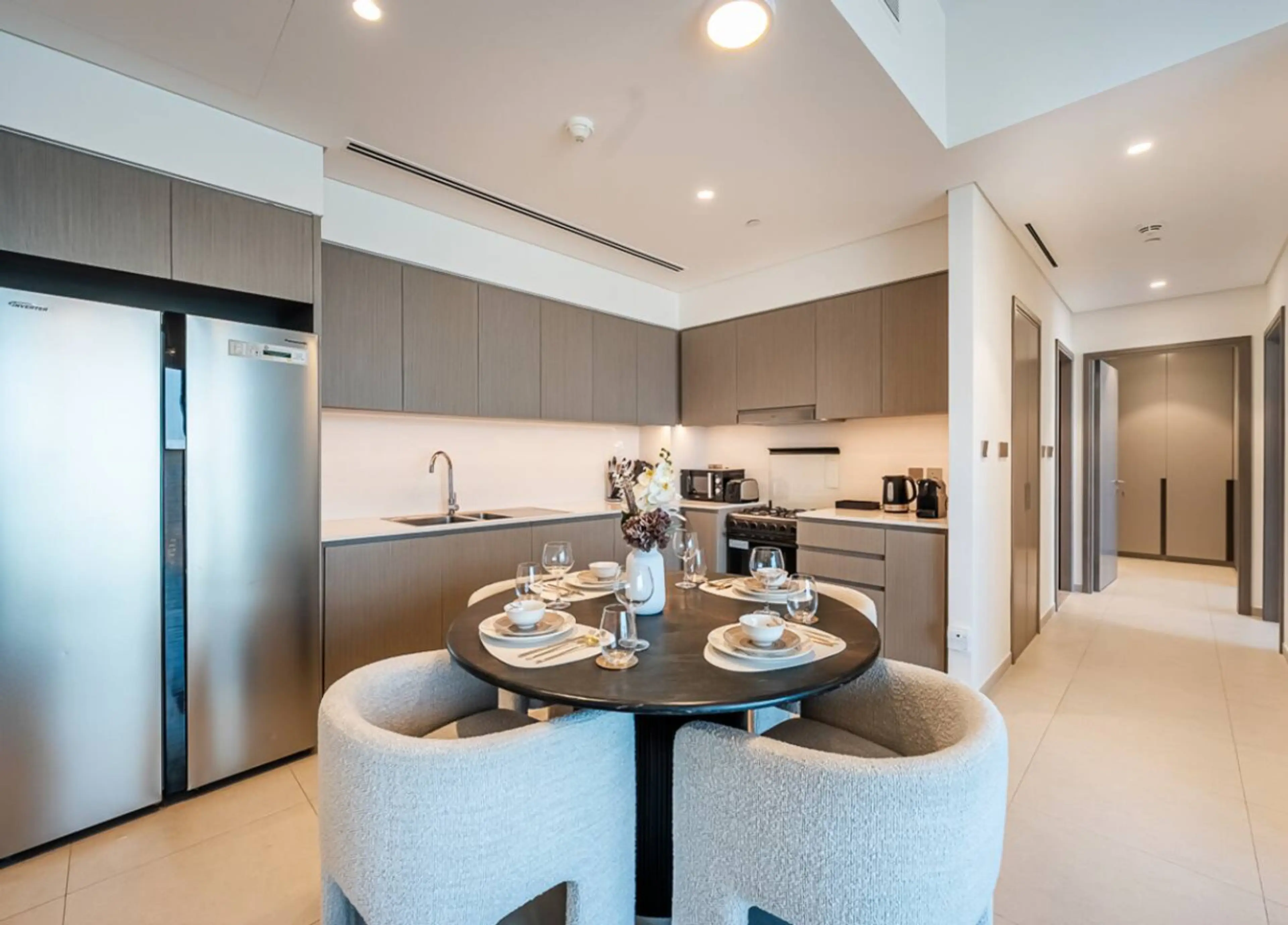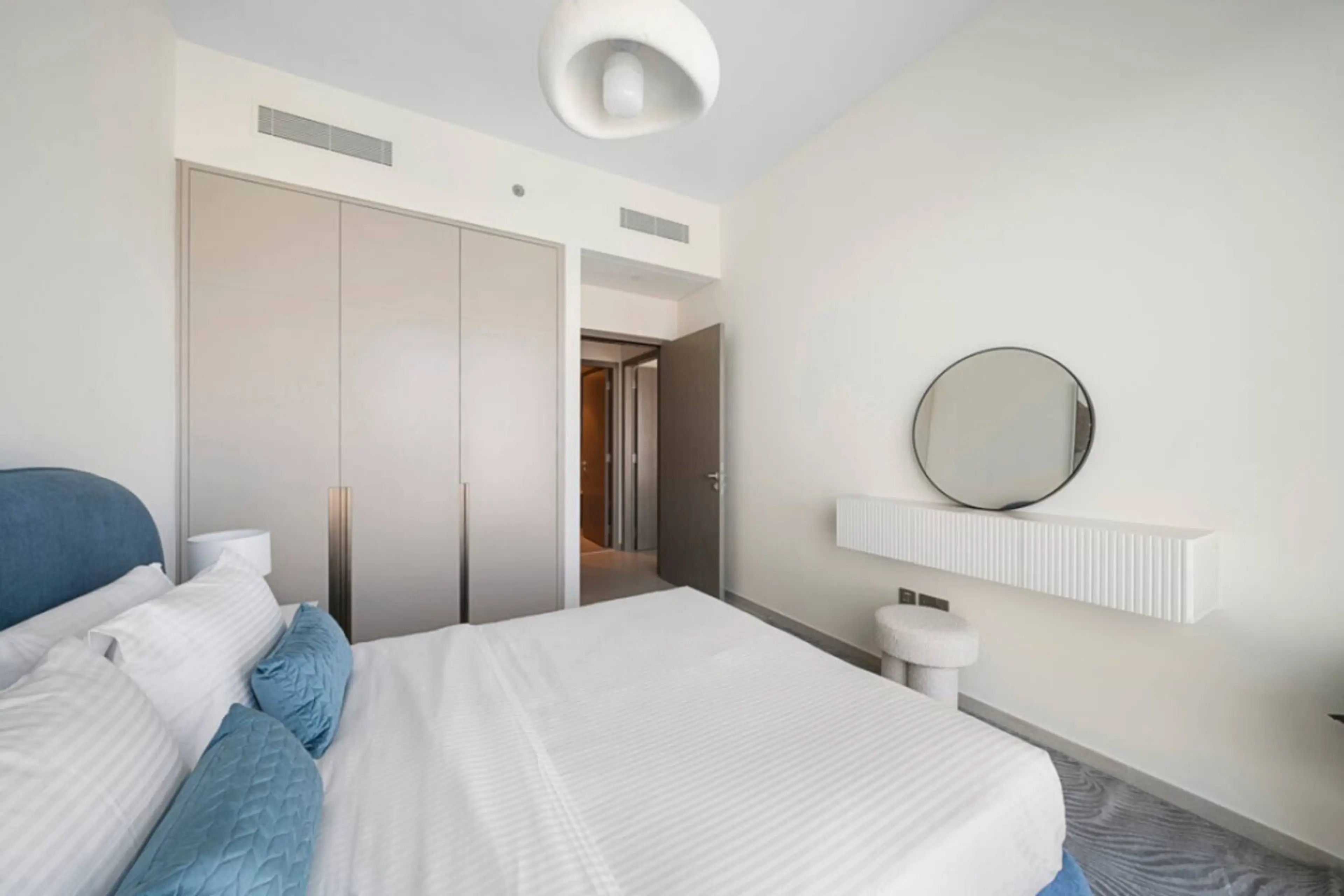 Wake up to breathtaking Burj Khalifa and Dubai Fountain views from your private balcony on the 44th floor of Grande Signature Residences. This luxury 2BR apartment combines elegance and comfort with designer interiors, floor-to-ceiling windows, Smart TVs, and high-speed Wi-Fi. Enjoy a fully equipp...