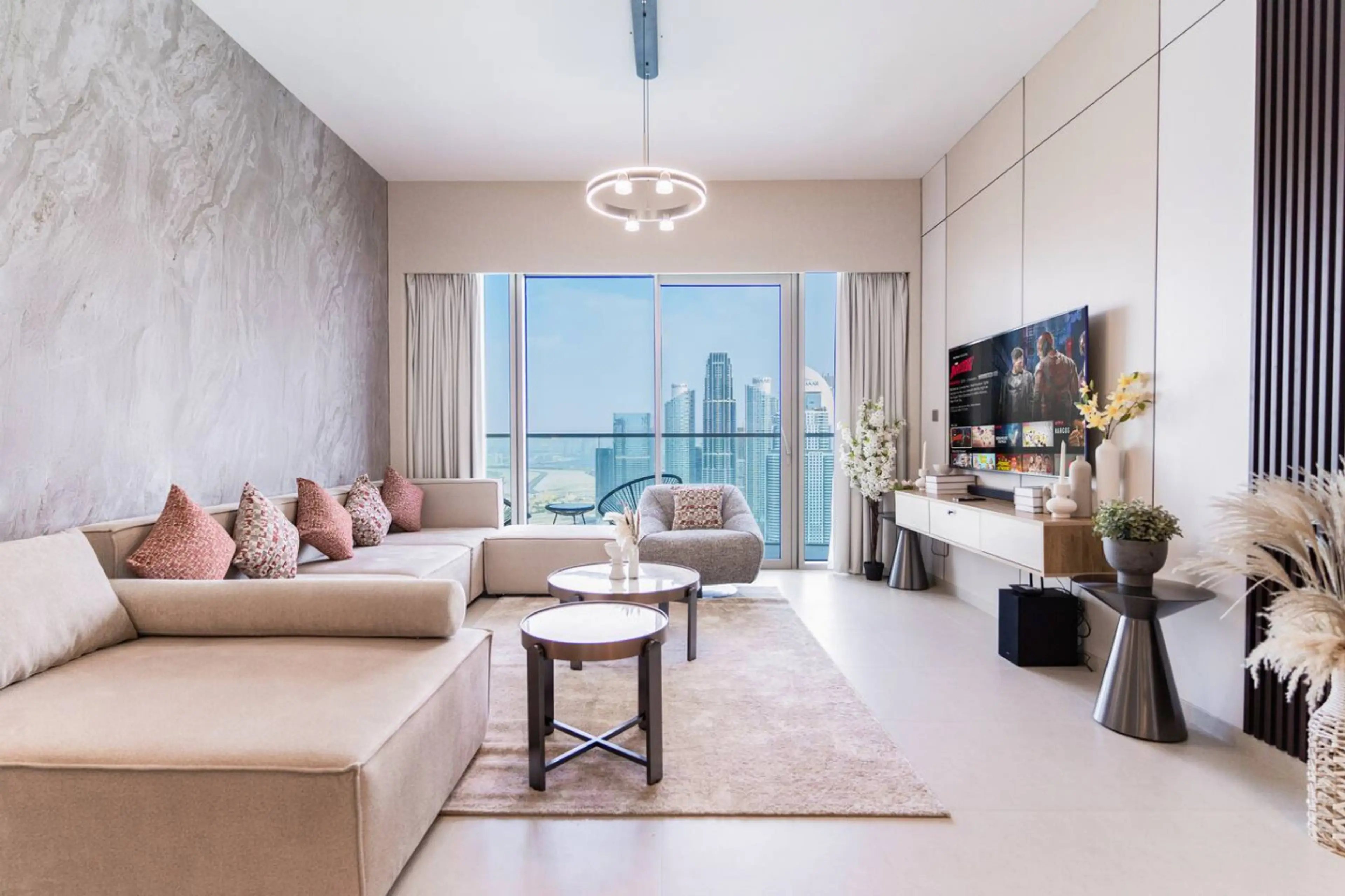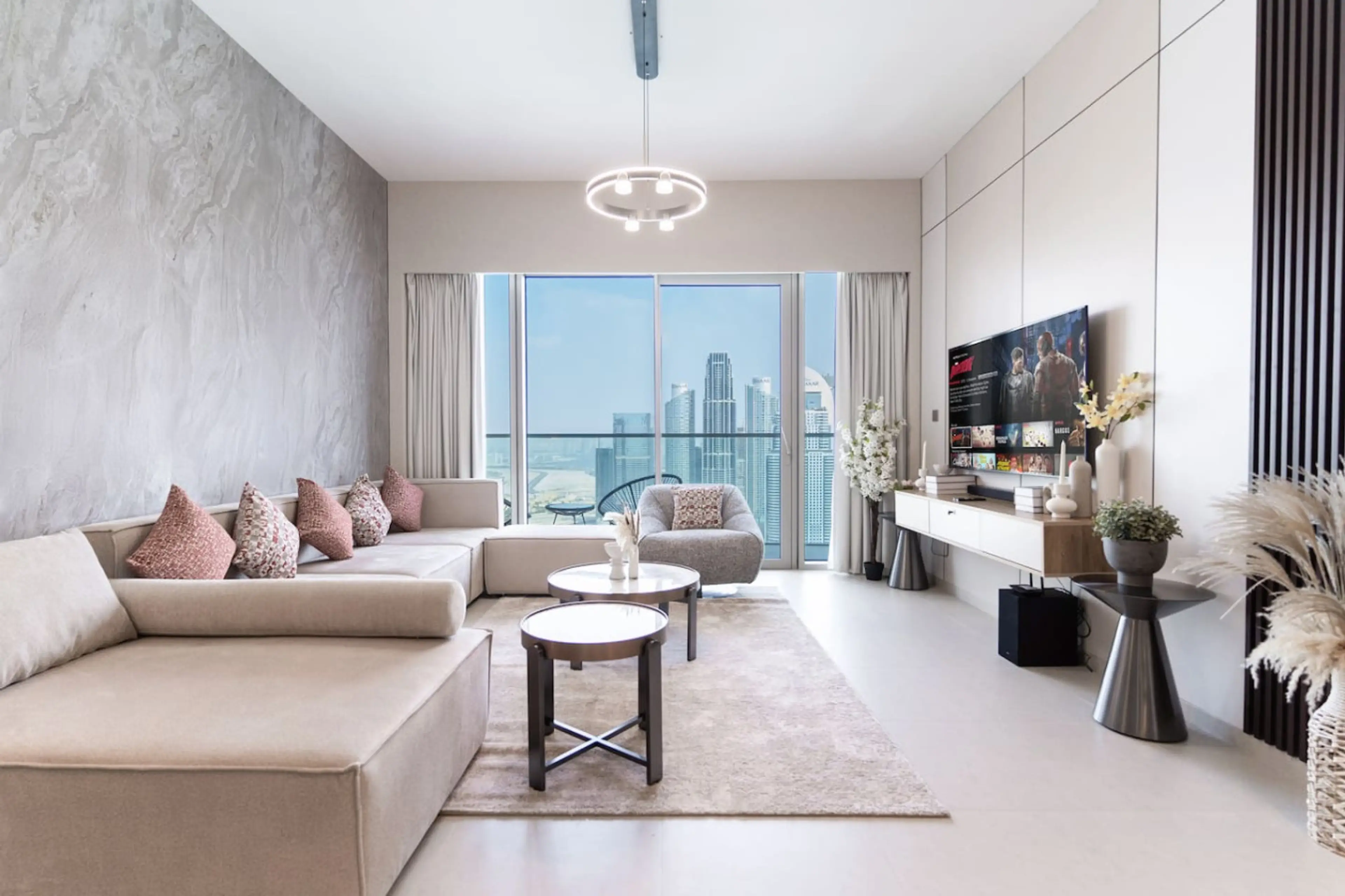 Experience elevated living at Grande Signature Residences, offering breathtaking Burj Khalifa and Dubai Fountain views from level 48. This luxury 2-bedroom apartment blends modern elegance with unmatched comfort — featuring floor-to-ceiling windows, plush furnishings, Smart TVs, and high-speed Wi-...